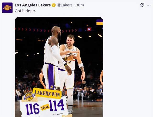 在比赛第四节初段东契奇不在场时,湖人打出进攻一波流,球队围绕老兵詹姆斯反而打得更从容;但剧情反转也来得相当快,东契奇一出场,太阳反而再度开始疯狂追分。